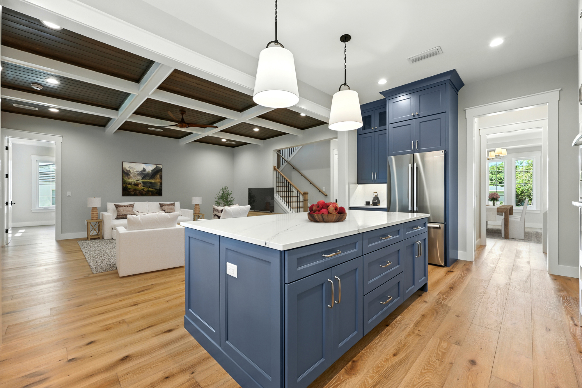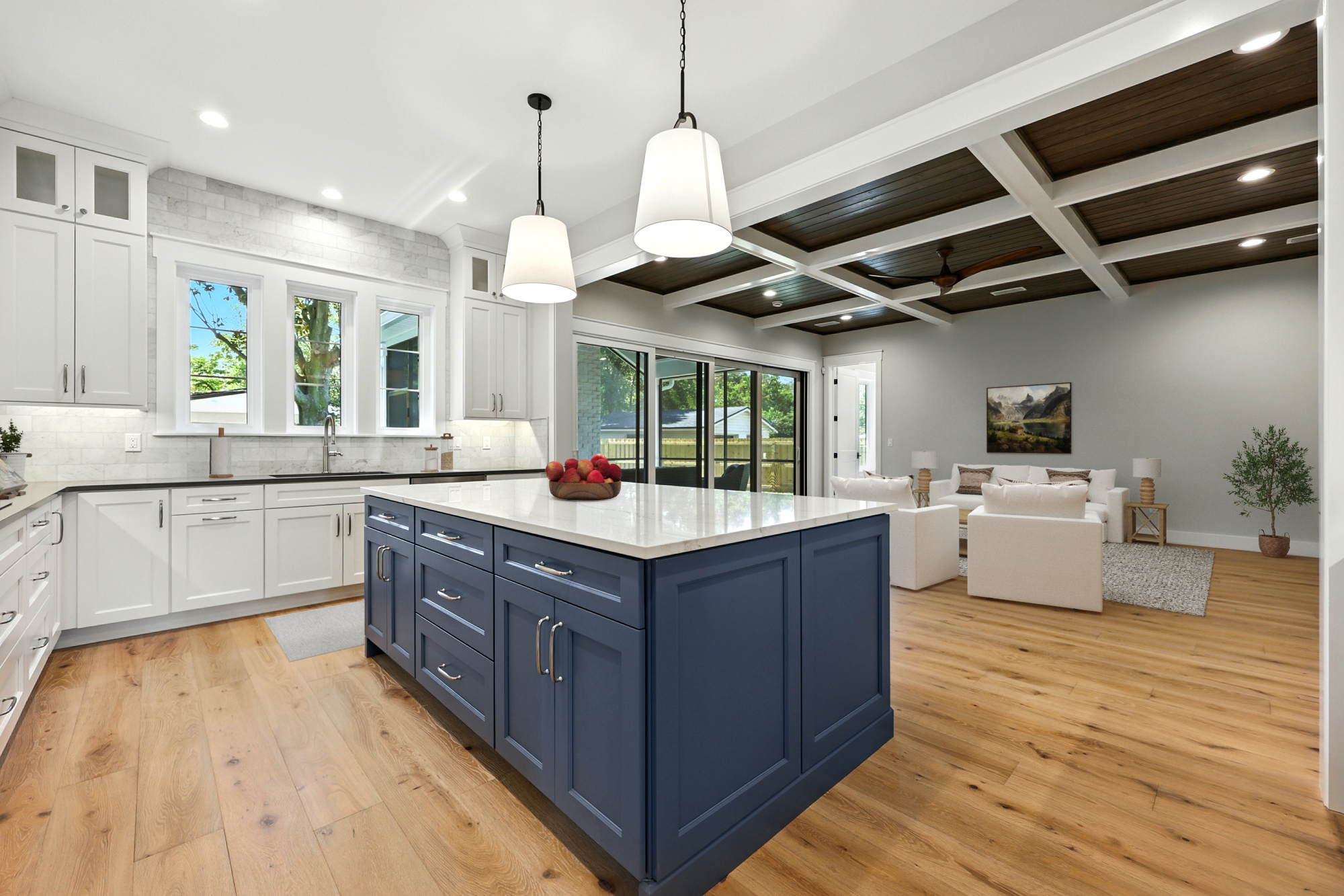 Large kitchen with California island, butler’s pantry and walk-in pantry